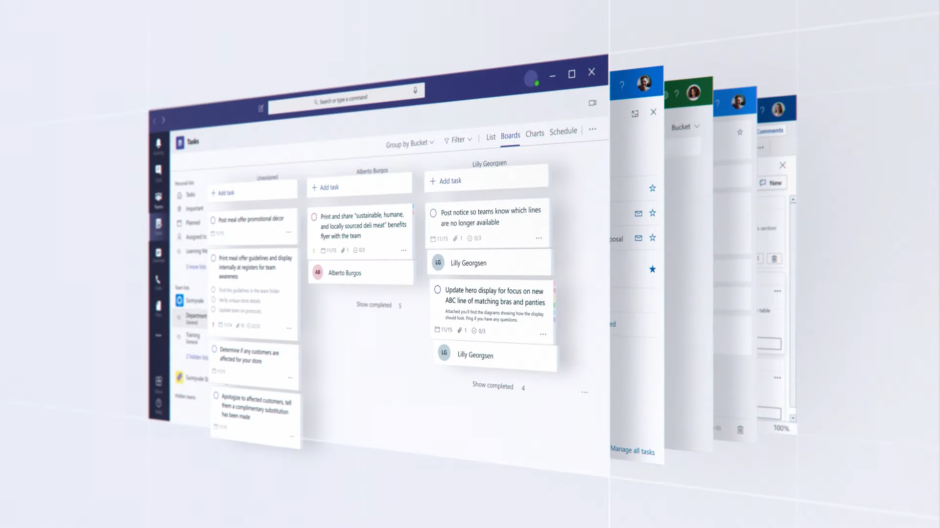 Board view is where you can effortlessly create tasks and move them between buckets just like you would on a Kanban board or Scrum.